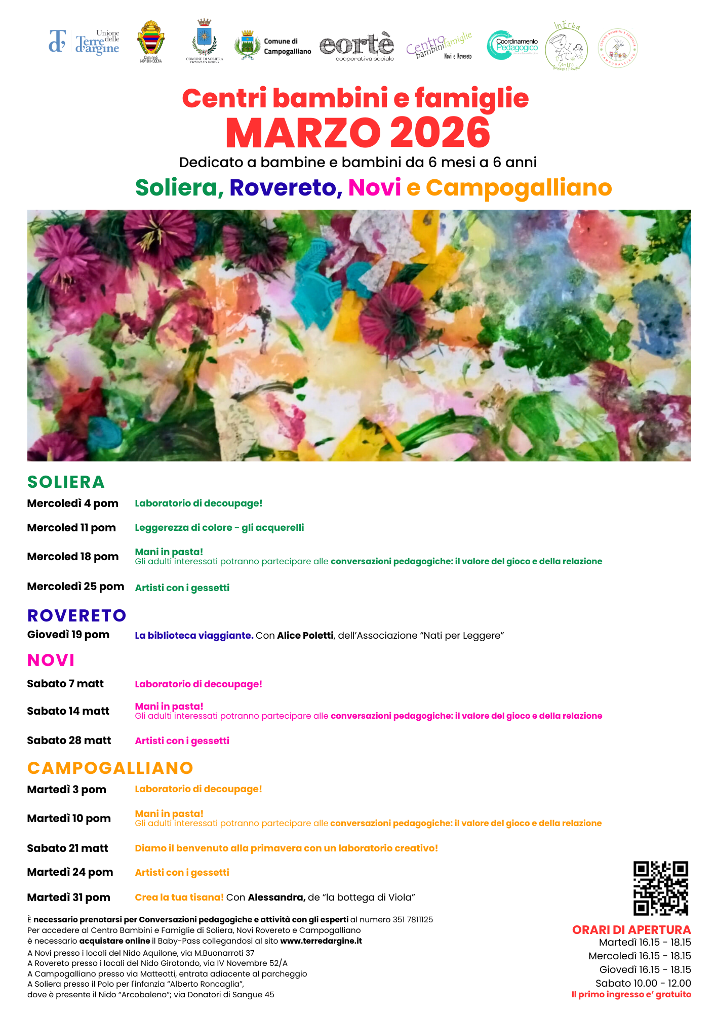 Presso il nido Aquilone di Novi e il nido Girotondo di Rovereto è attivo il Centro Bambini e Famiglie.
